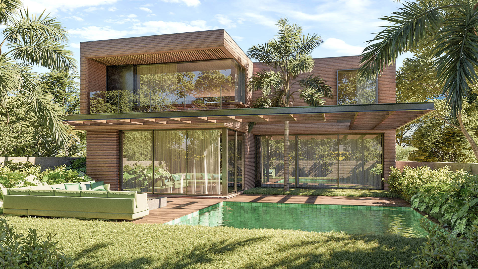 A volumetria é clara, limpa e objetiva, aliando a funcionalidade ao modernismo. E muitas vezes sendo ressaltada com acabamentos de destaque e de alta qualidade, como painéis em madeira ou brises.